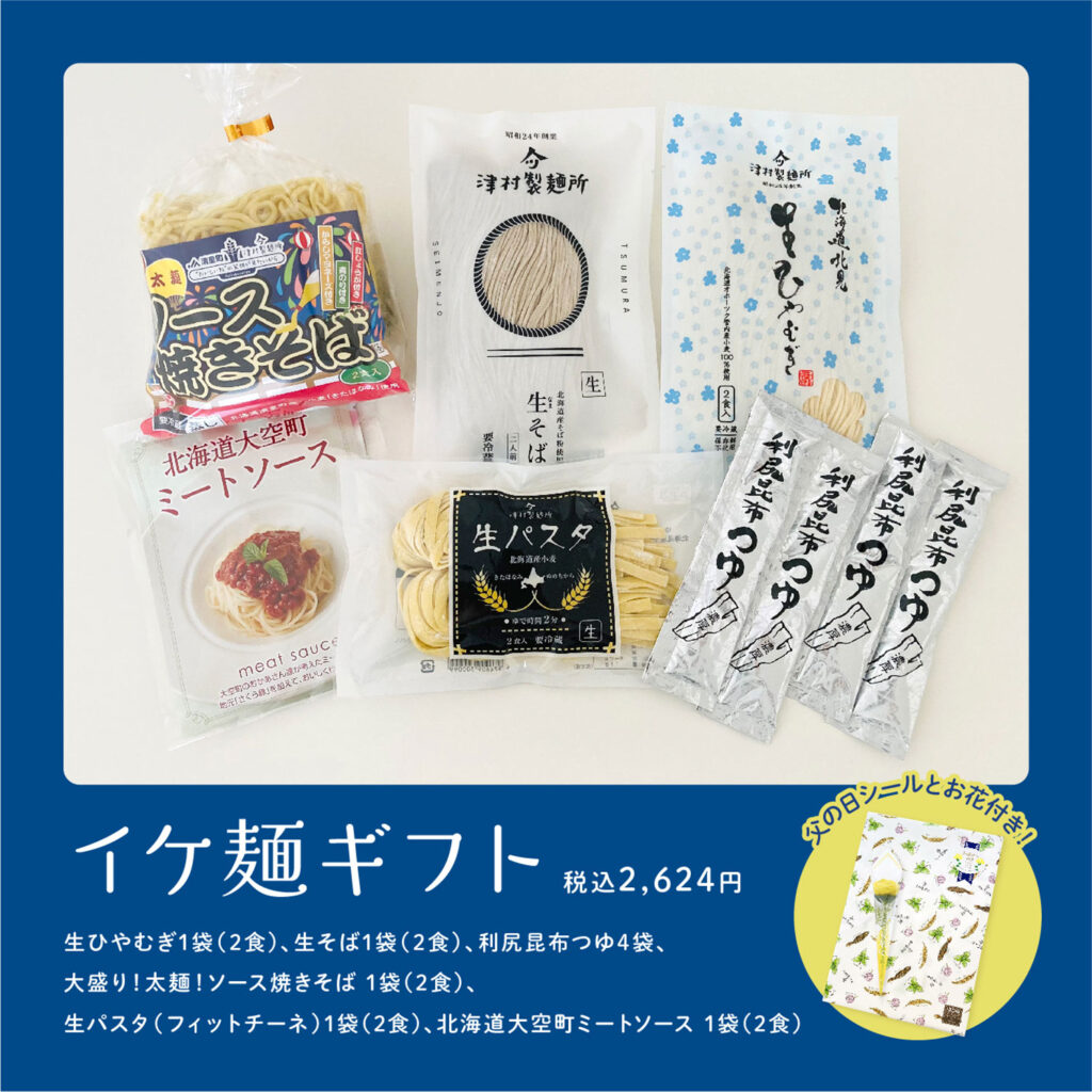 店舗の人気商品「太麺ソース焼きそば」、プロも愛用する「生パスタ」、津村製麺所名物「生ひやむぎ」、健康的な「生そば」 を全てセットにしました。