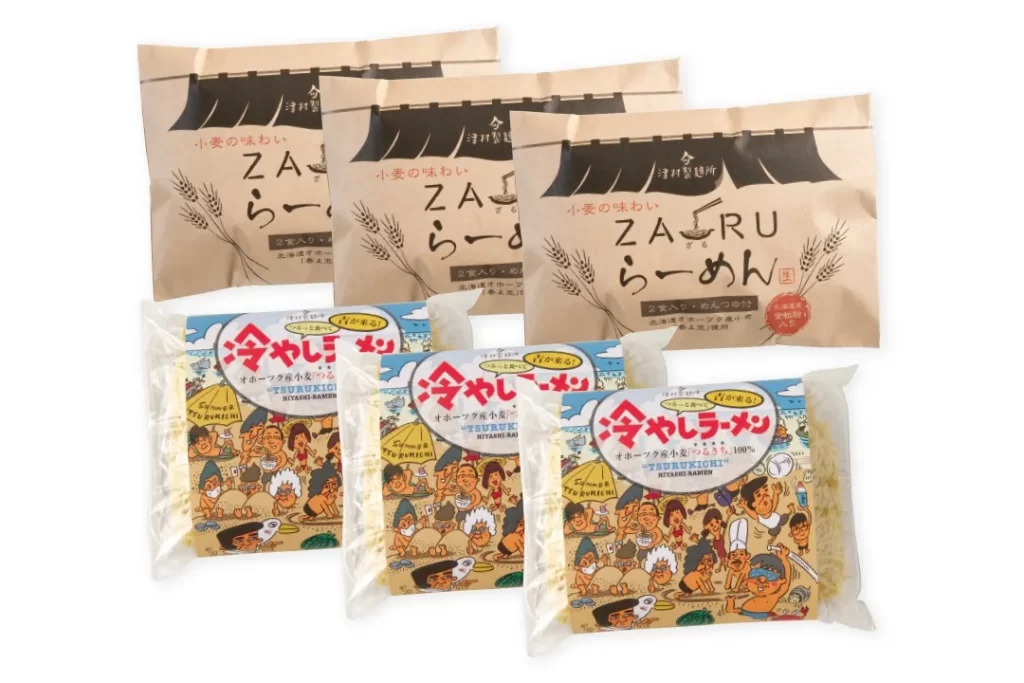 オホーツク産の小麦「春よ恋」と「きたほなみ」に全粒粉を加えた、小麦の風味を存分に味わえるざるらーめんです。ストレートタイプのめんつゆも付いております。